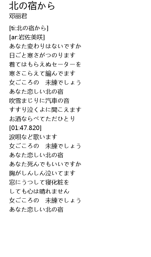 北の宿から Bei Su Lyrics Follow Lyrics