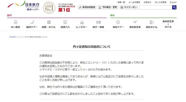 日本旅行 就活生約4万人に 内々定 メール誤送信 応募してないのに内定した と混乱広がる キャリコネニュース