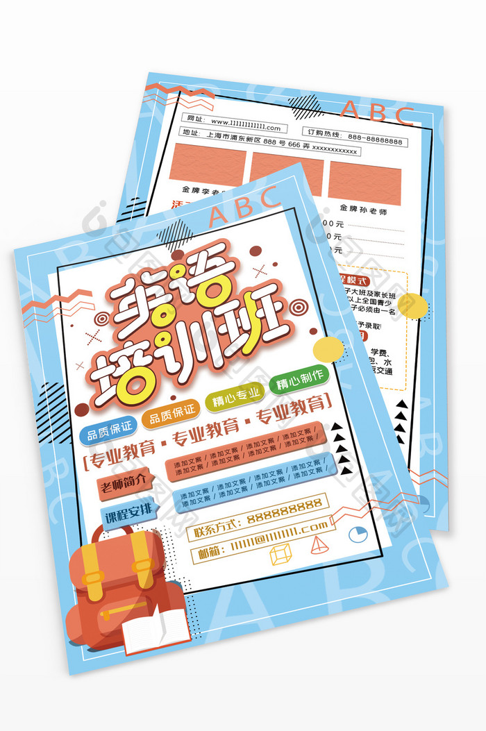 蓝色卡通暑假班英语培训班开课啦宣传单 图片下载 包图网