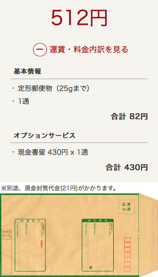 現金書留 封筒 料金 21円