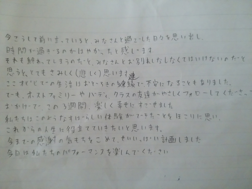 お別れの挨拶です でももう少し一緒にいます 交換留学生 順天中学校 高等学校