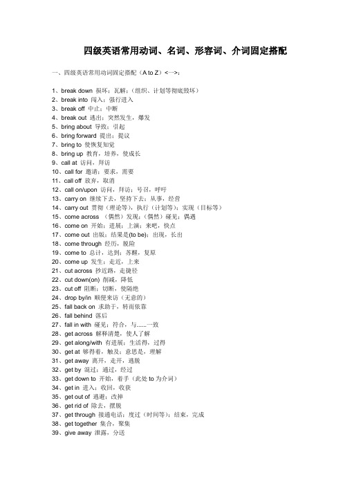四级英语常用动词 名词 形容词 介词固定搭配 百度文库