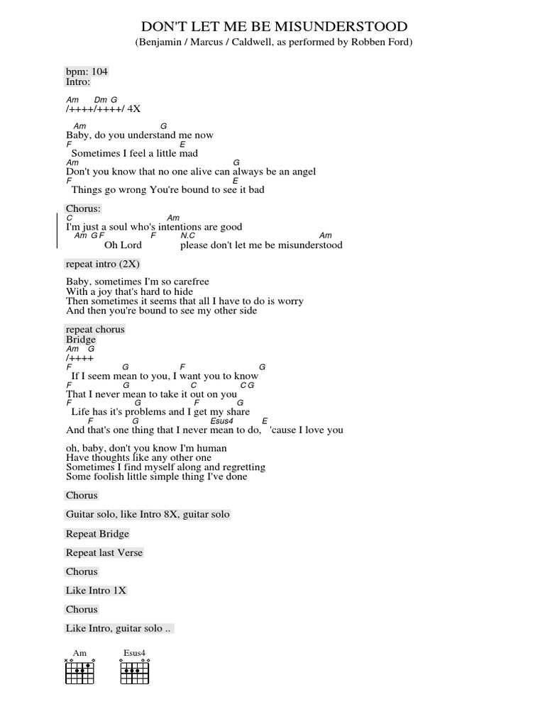 D bm but i m just a soul whose. Chords for the animals don t let me be misunderstood. We have an official dont let me be misunderstood tab made by ug professional guitarists. Chordie does not index songs against artists composers will.